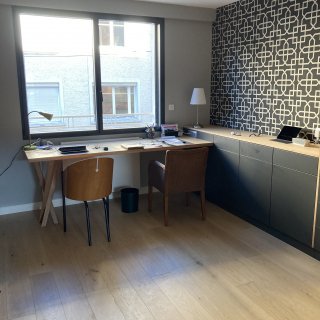 Le projet devait intégrer une penderie, un dressing, des rangements pour dossiers d'archives et un bureau double.