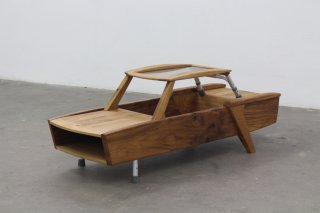 Rapidement figé par ses attributs gériatriques, l'objet est renvoyé à sa fonction toute sédentaire, celle d'une table basse convertible en plateau repas.